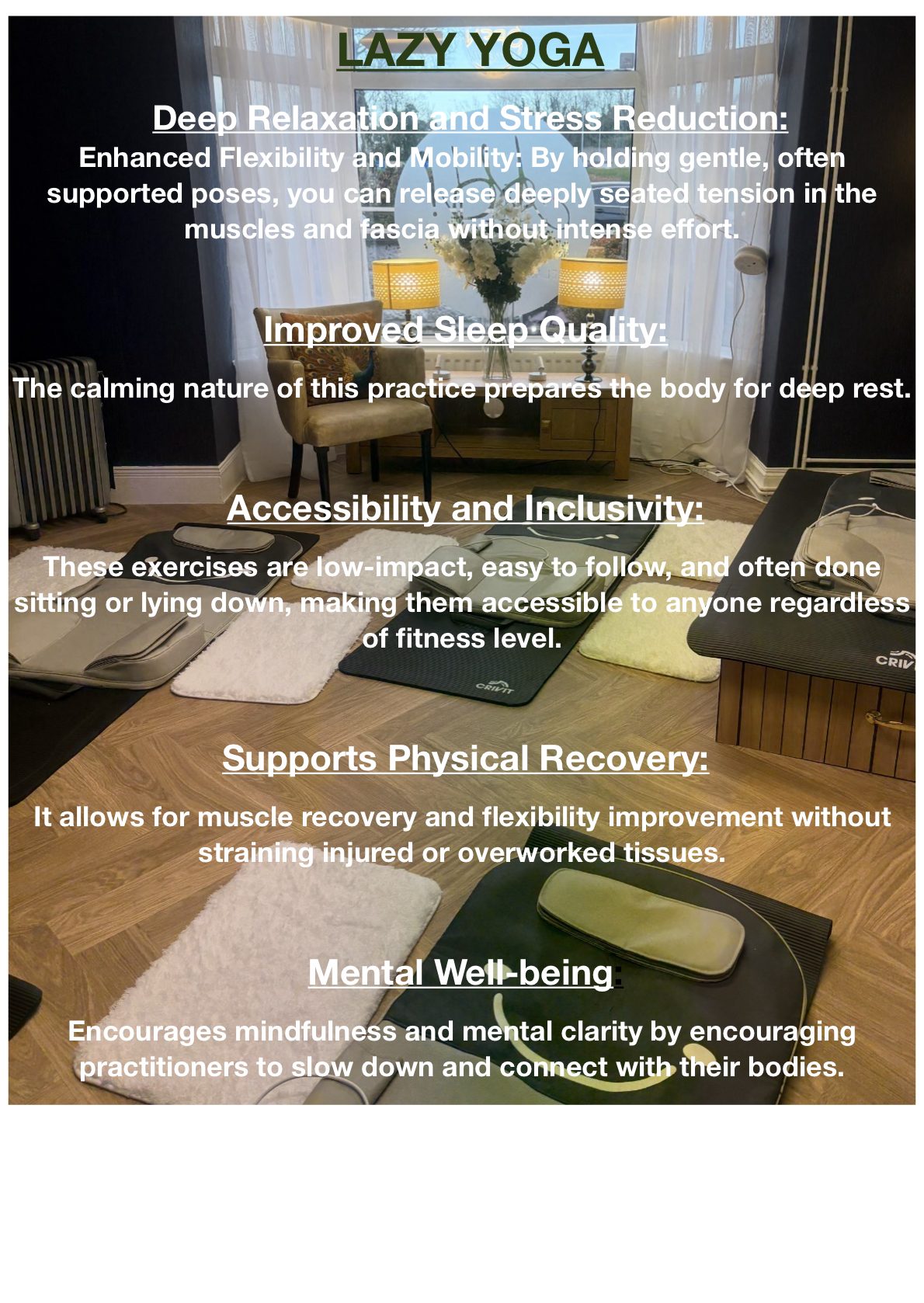 LAZY YOGA - 15mins £8, 30mins £15